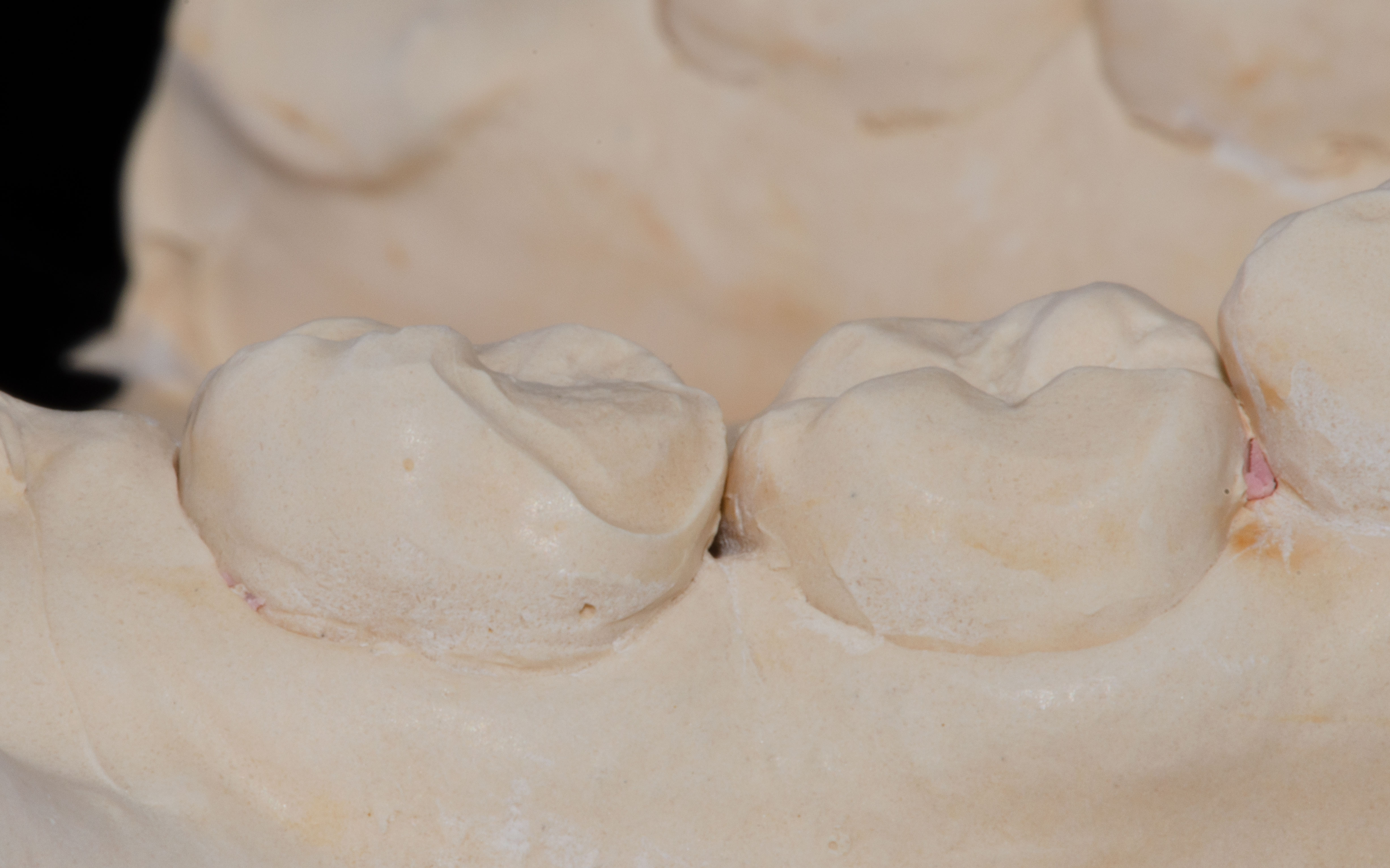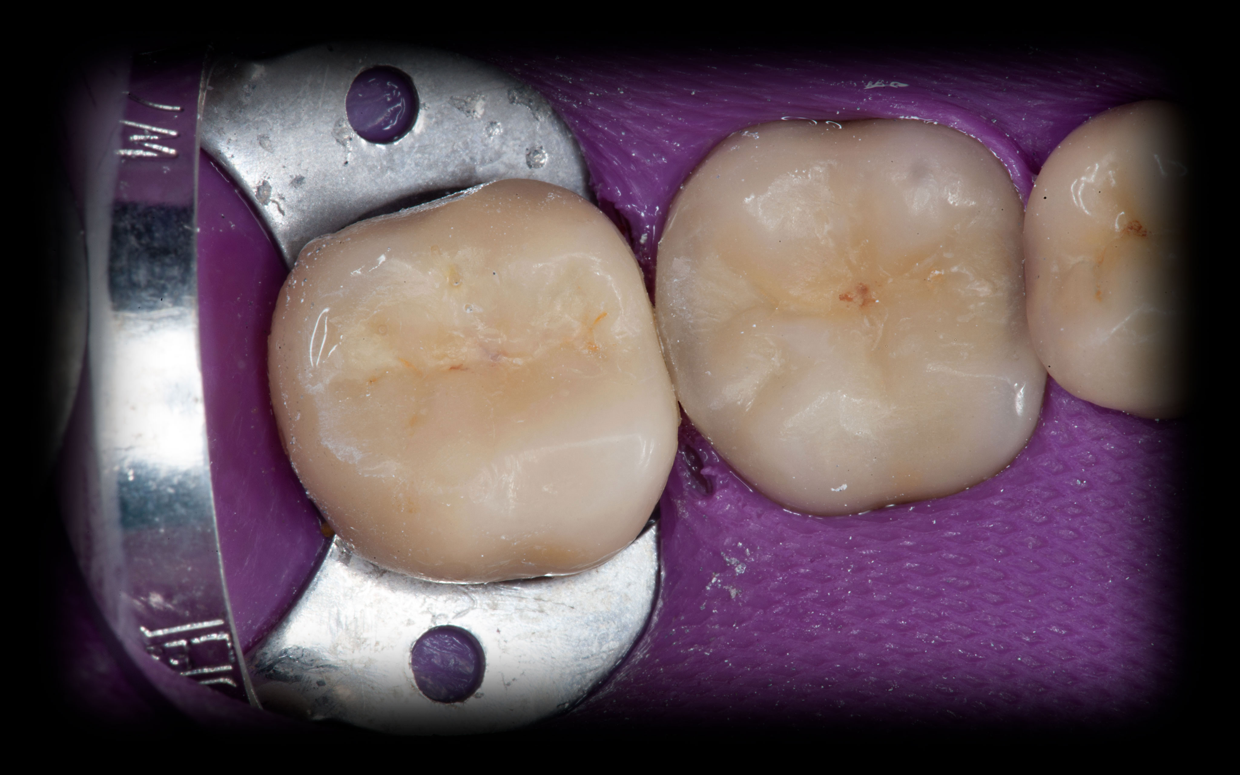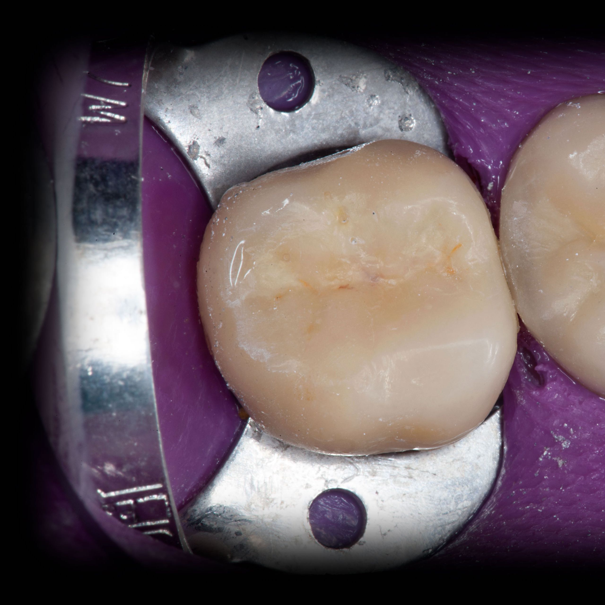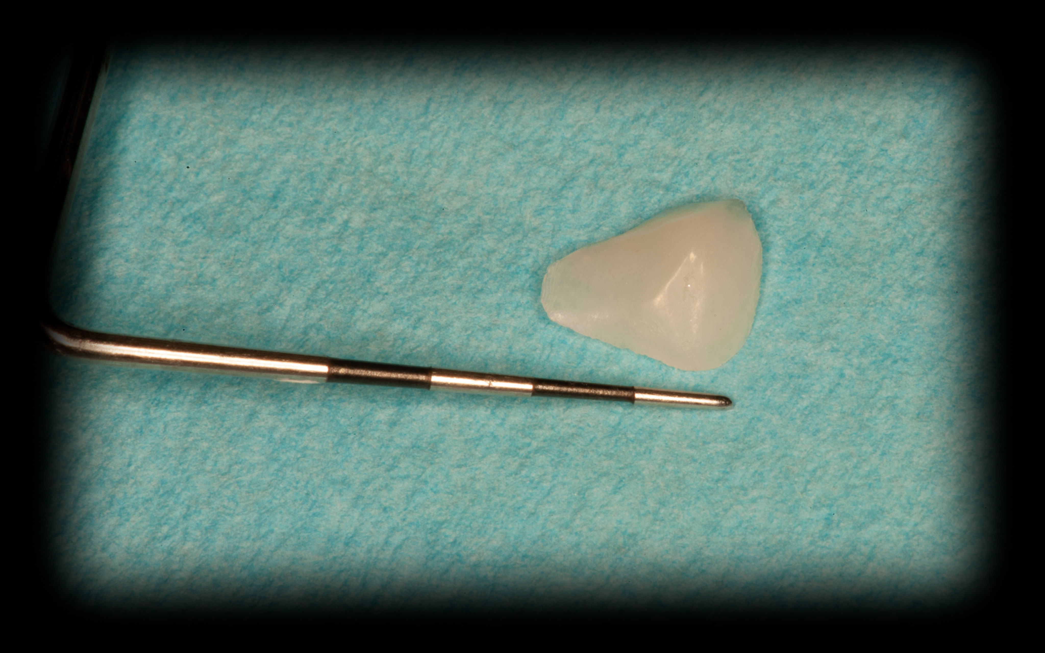 Bei solchen Keramikfrakturen muss immer erst nach der Ursache geforscht werden, damit sie nach der Reparatur lange halten. In diesem Fall war die Eckzahnführung zu schwach. Die Belastung der Krone in Folge zu hoch. Nach Anpassung der Führung konnte das Veneer sicher und stabil platziert werden
